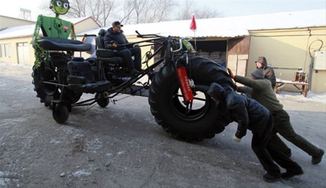 Abulajon adlı kişi bu 2,3 metre uzunluğundaki dev motosikleti toplam 1300 dolara mal etti.