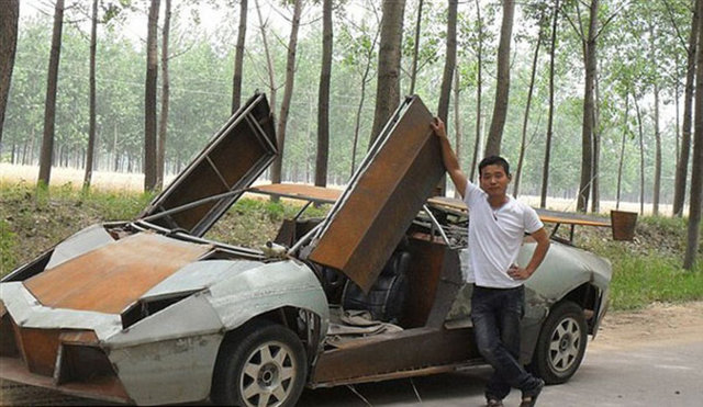 Çin'in doğusundaki Jiangsu bölgesinde yaşayan oto tamircisi ve çiftçi Wang Jian (28) , 840 bin sterlin değerindeki Lamborghini Reventon model süper arabanın benzerini metalden 6 bin sterline yaptı.