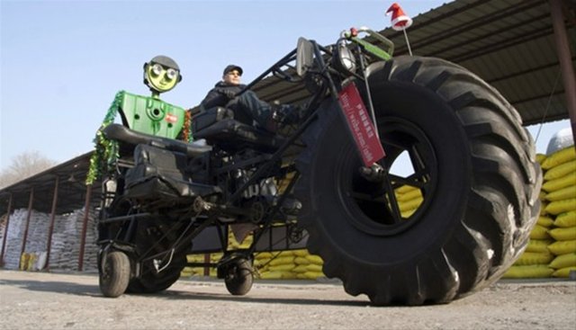 Başkent Pekin yakınlarındaki bir köyde yaşayan Wu Yulu adlı çiftçi, hurda demir ve kablolardan ürettiği robotuna, şoför bölümüne yerleştirdiği bir direksiyonla yön veriyor. - Çek-çek robotunun bugüne kadar yaptığı en büyük robot olduğunu belirten Yulu, bu hobisinin 1986 yılından beri sürdüğünü ve evinde pek çok kullanışlı robotu bulunduğunu söylüyor.