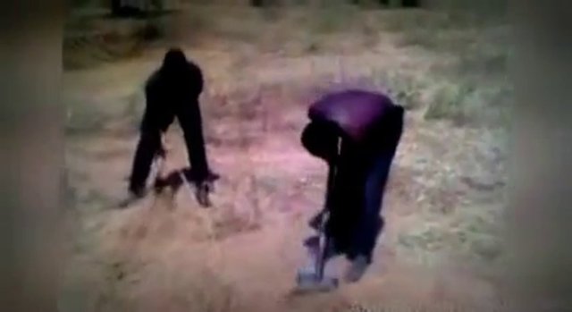 Bir asker daha sonra ikinci bir militana dönüp onun da boğazını kesiyor ve dehşeti izlemeye zorlanan diğer militanların gözleri önünde çukura atılıyor.