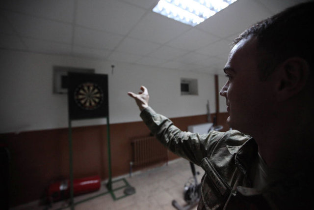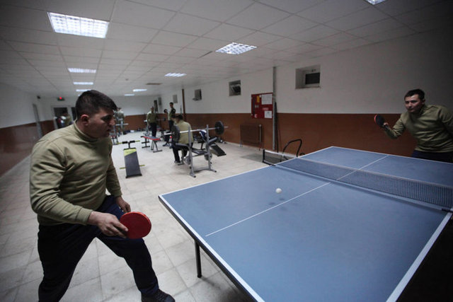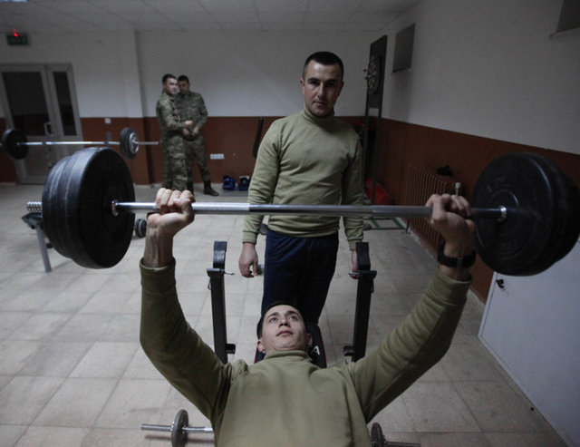 Atatürk'ün "Sağlam kafa sağlam vücutta bulunur" sözünü düstur edinen askerlerin yaşamında sporun çok önemli bir yeri var. Güne sabah sporuyla başlayan Mehmetçik, görevlerinden kalan zamanlarını da taburun spor salonunda değerlendiriyor.