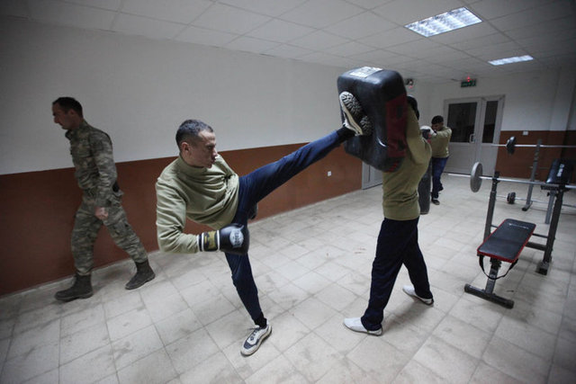 En büyük zevkleri kick-box. Biri minderi tutarken, diğeri tekmeleyip yumrukluyor. Sözleşmeli er maaşı 3 bin 269 TL. İkizlerin Ardahanlı ailelerine aylık katkısı 6 bin 500 TL'yi aşıyor.