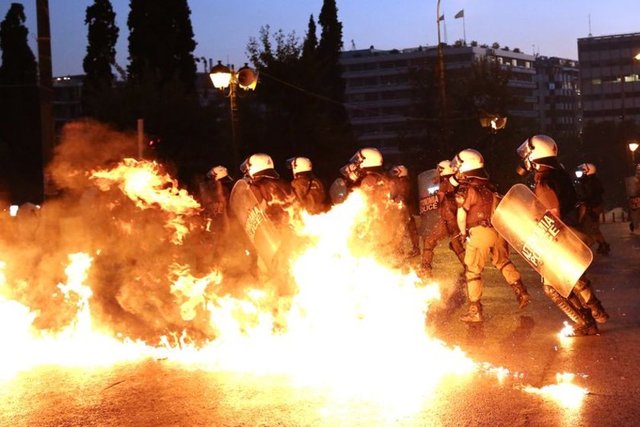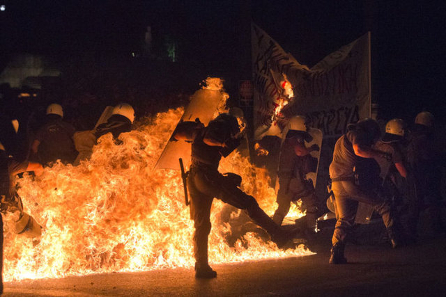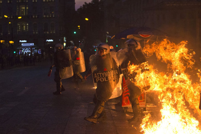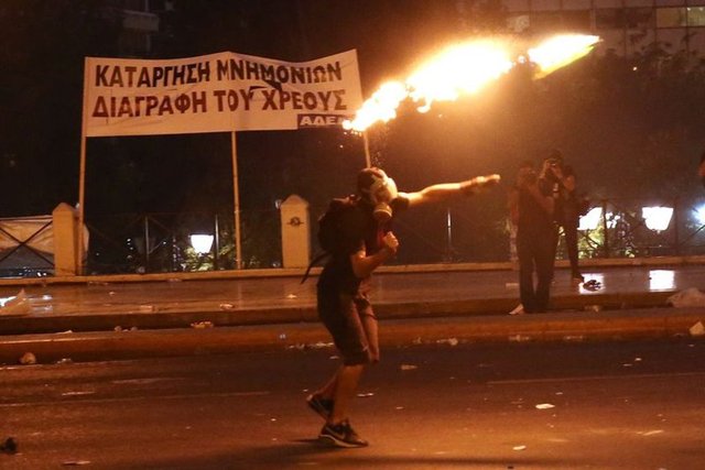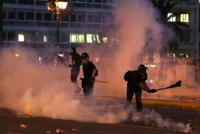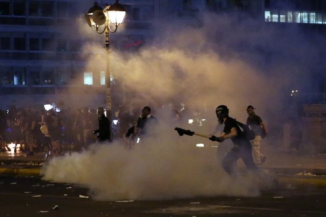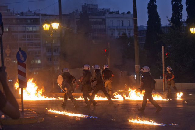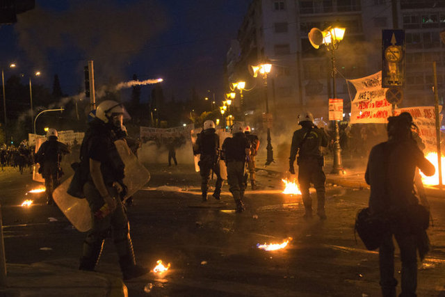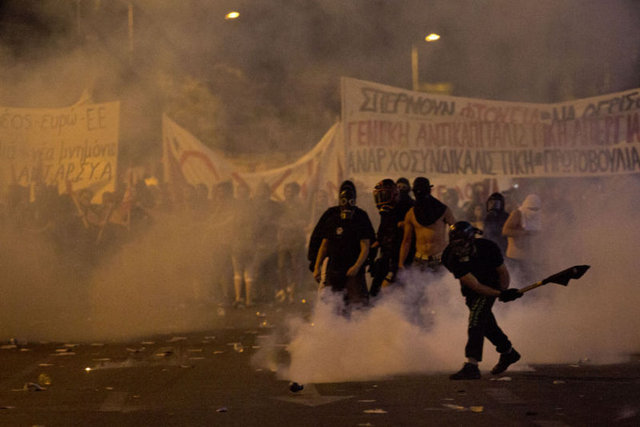Yunanistan'ın başkenti Atina'da, hükümet tarafından kabul edilen "kurtarma paketi"ne karşı gösteri düzenlendi. Yoğun güvenlik önlemleri altında gerçekleşen gösteride, kendilerini "iktidar karşıtı anarşistler" olarak adlandıran ve polise molotof kokteyli atan gruba göz yaşartıcı gazla müdahalede bulunuldu.