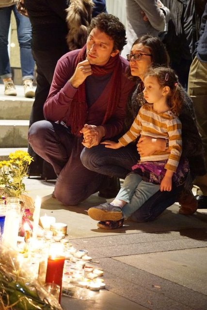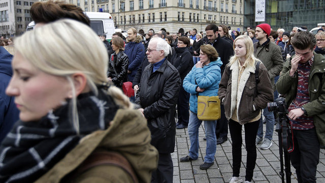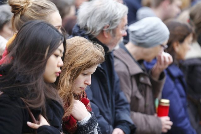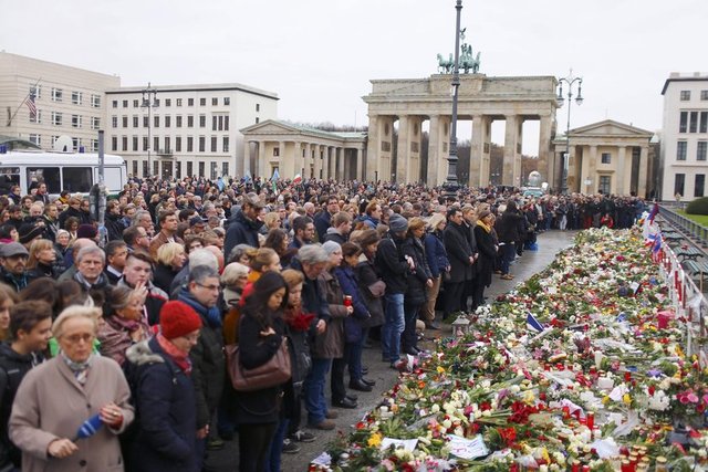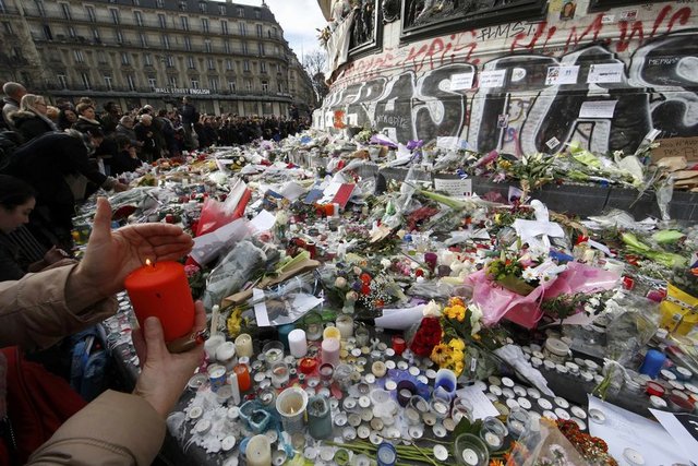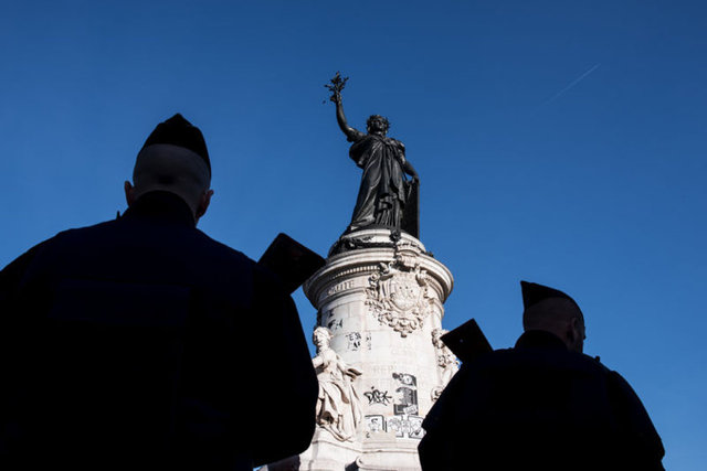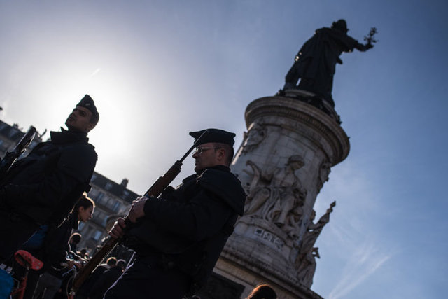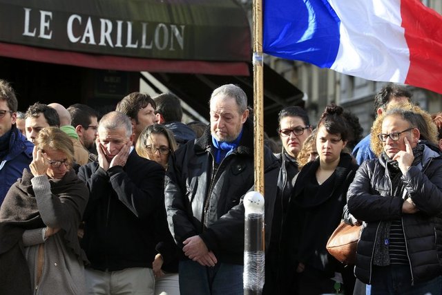 Paris'te ölenler için saygı duruşu yapıldı. Saygı duruşu üç farklı noktada düzenlendi.
