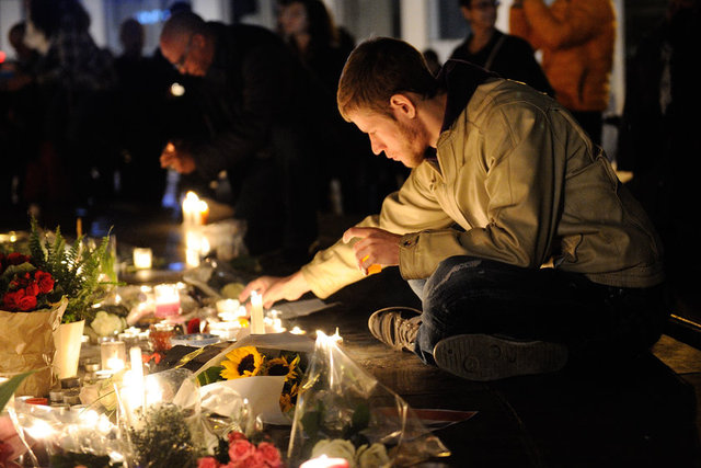 PARİS'TE BÜYÜK PANİK!Fransa'nın başkenti Paris'te yüzlerce kişi terör saldırısında hayatını kaybedenleri 15 Kasım Pazar akşamı andığı sırada bomba olduğu veya silah sesi duyulduğu söylentisi büyük panik yaşanmasına neden oldu.