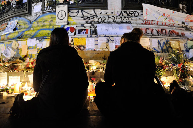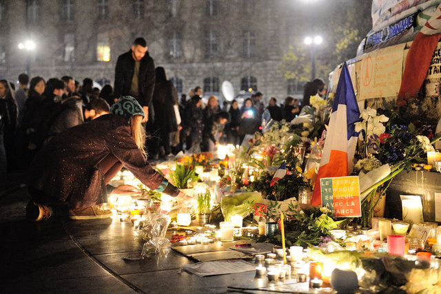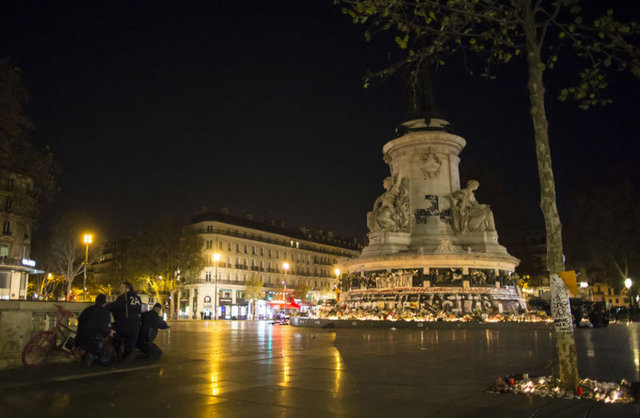 Place de la Republique Meydanı'nda yüzlerce kişi terör saldırısında hayatını kaybedenleri andığı sırada bir bomba olduğu veya silah sesinin duyulduğu söylentisi yayıldı.