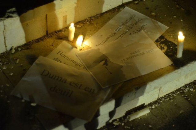 Saygı duruşları Borbone Üniversitesi önünde yapıldı. Törene Fransa Cumhurbaşkanı François Hollande da katıldı.