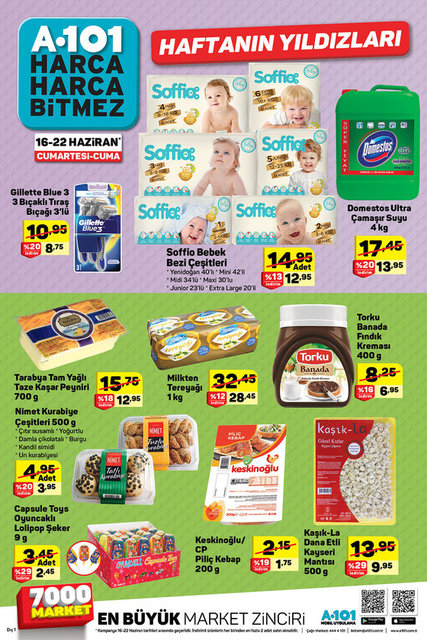 A101 16 - 22 Haziran aktüel ürünler kataloğu yayınlandı. A101'de bu hafta pek çok gıda ürününün yanında, bebek bezi, şampuan ve mobilya ürünleri haftanın yıldızlarının arasında yer alırken, yine pek çok gıda ürünü çok al az öde fırsatuyla raflarda olacak. İşte A101 indirimli aktüel ürünler kataloğu...