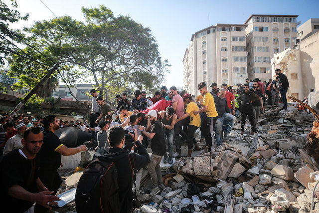 Gazze'nin batısında konut olarak kullanılan 6 katlı, 25 daireli Enes bin Malik apartmanı da İsrail saldırısı nedeniyle tamamen yıkıldı. -