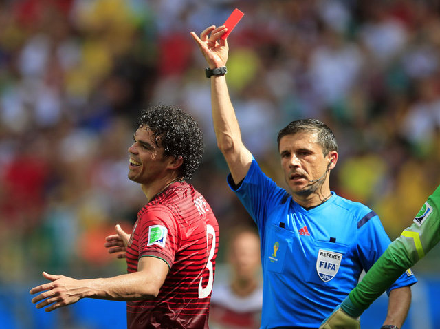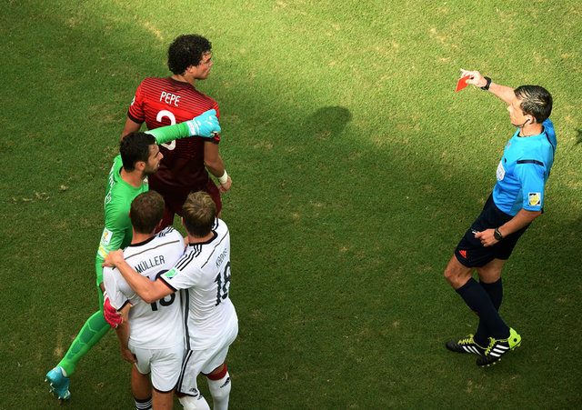 Portekizli yıldız Pepe, Almanya maçında kırmızı kart gördü (2014 Dünya Kupası)