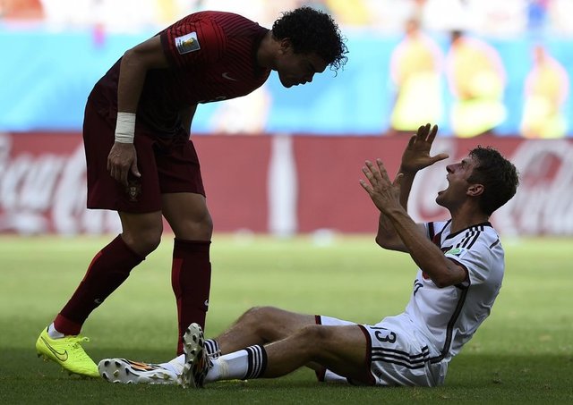 Tekrar görüntülerinde deneyimli oyuncunun Müller'in yerde kalmasının ardından yanına giderek kafasıyla rakibini ittirdiği görüldü.