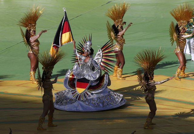 Meksikalı gitarist Carlos Santana'nın eşlik ettiği Wyclef Jean ve Alexandre Pires, sokak dansçılarının gösterileriyle birlikte 2014 Dünya Kupası'nın resmi marşı "Dar Um Jeito"yu söyledi.