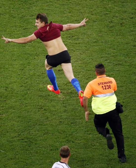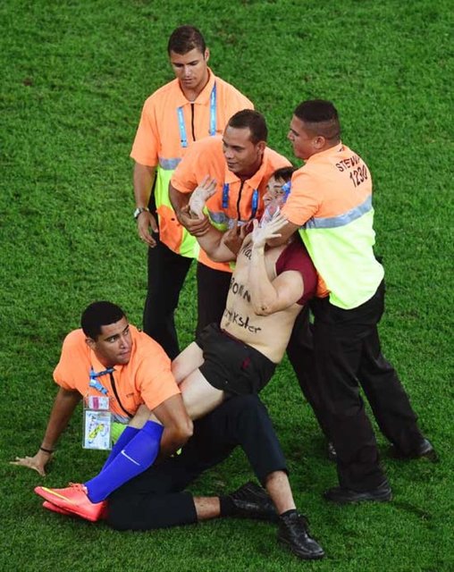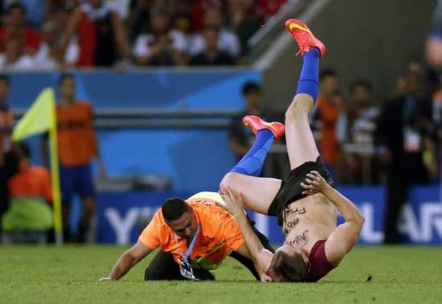 Dünya Kupası'nda Almanya - Arjantin finalinde normal sürenin son bölümlerinde bir taraftar sahaya girdi