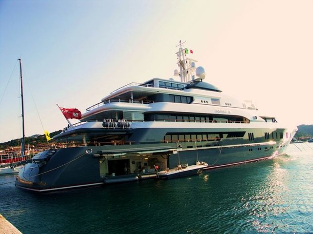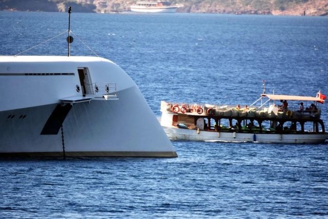 Bodrum Kalesi açıklarında demirleyen 250 milyon dolarlık, 77 metre uzunluğundaki 44 kişi kapasiteli yat, görenlerin büyük ilgisini çekti. 5 güvertesi, 17 kabini bulunan yatta bir de helikopter bulunuyor.