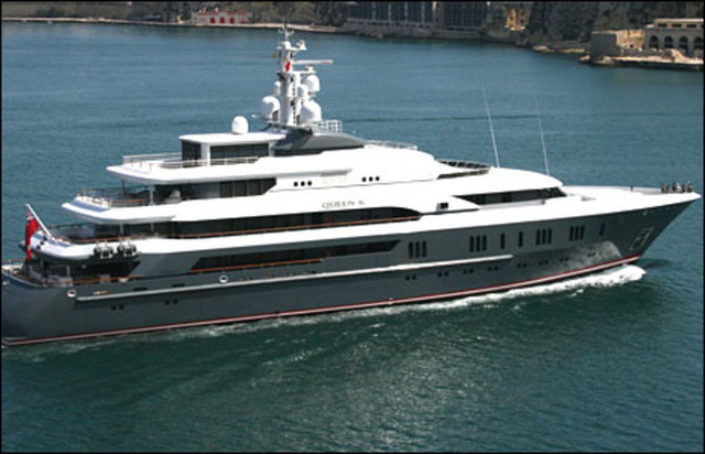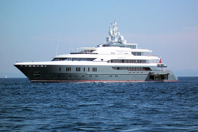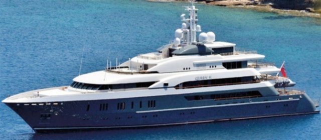 ...ardından da 300 metre uzaklıktaki 75 metre uzunluğundaki 140 milyon dolar değerindeki 'Queen K' isimli yatına geçti.