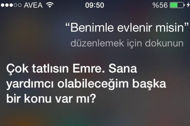 Siri'ye evlenme teklif edenler de oldu, hakaret eden de... Bazı kullanıcılar da fotoğraflara dijital dokunuşlar yaparak eğlenceli cevaplar yarattı... İşte Türkçe Siri'den seçmeler...