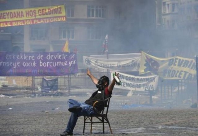 Polisin Gezi Parkı'na müdahale ettiği ilk gün Reuters muhabiri tarafından çekilen bu kare tüm dünya basınında yer buldu.