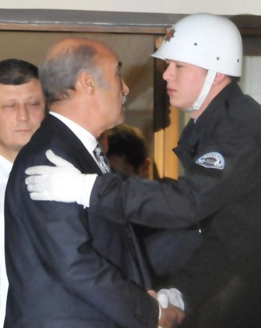 Makamından ayrılırken çalışma arkadaşları ve polislerle vedalaşan Çapkın, kapıda nöbet tutan polislerle de selamlaşarak vedalaştı.