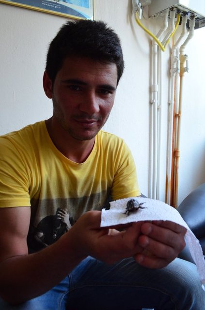 Amasya'da Naide İnan da, - internetten araştırma yaptığında - yakaladığı böceğin - gergedan böceği olduğunu - anlamış.