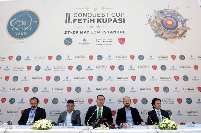 Okmeydanı'ndaki Okçular Tekkesi'nde düzenlenen 2. Fetih Kupasının açılışına katılan Başbakan Recep Tayyip Erdoğan'ın oğlu Necmettin Bilal Erdoğan "Ya Hak" diyerek iki ok atışı yaptı.