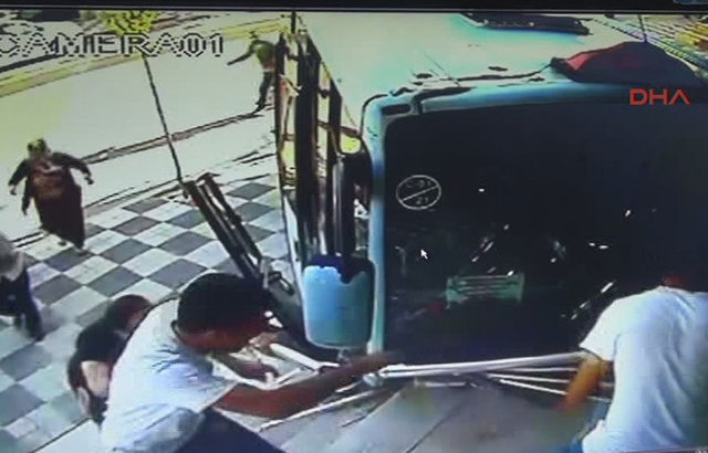 Feci kazada, merdiven ile minibüs arasında sıkışan Abdullah Yıldız adlı kişi hayatını kaybetti. 3 kişi de yaralandı.
