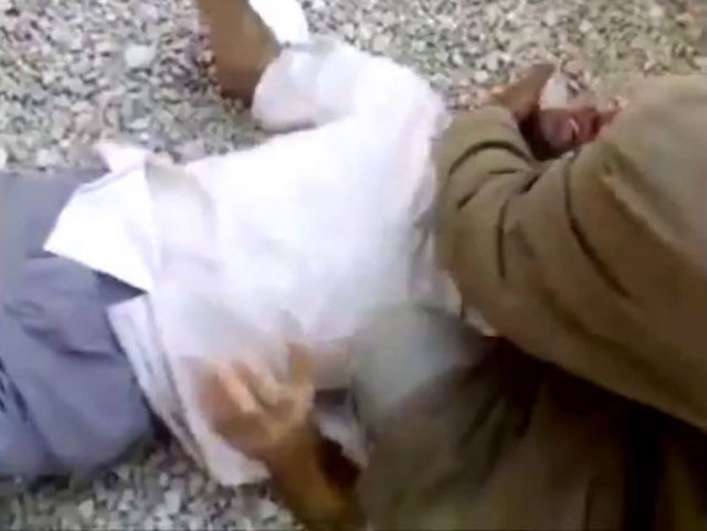 Bir süre sonra bölgede bulunan görevlilerden biri mahkumun altındaki idam sehpasını devirdi ve mahkum boğazından ipe asılmış şekilde can çekişmeye başladı.