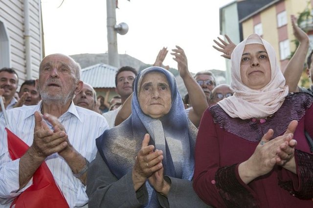 Taşkentli yaklaşık 500 kişi, belediye binasında önünde toplanarak, Başbakan Recep Tayyip Erdoğan'ın, partisinin MYK toplantısı sonucu açıklamasını televizyondan izledi.