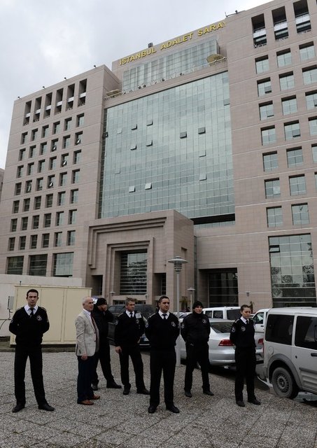 Adliye önünde, Olay Yeri İnceleme ve Çevik Kuvvet şube müdürlükleri ile itfaiye ve sağlık ekipleri de hazır bekletildi.