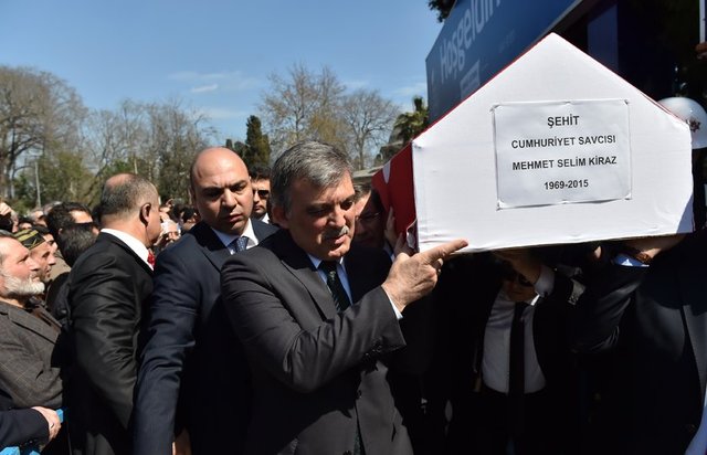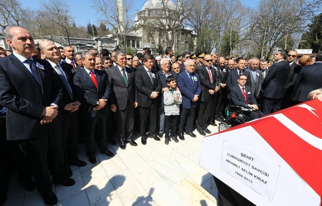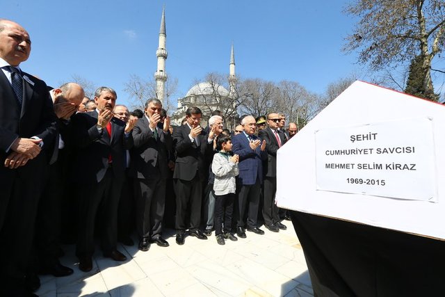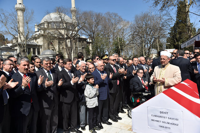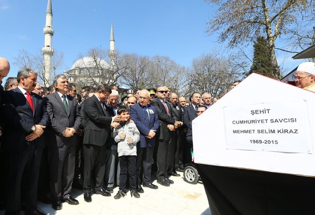 Savcı Mehmet Selim Kiraz'ın cenaze töreni Eyüp Camisi'nde yapıldı. Törene, TBMM Başkanı Cemil Çiçek, Başbakan Ahmet Davutoğlu, Başbakan Yardımcısı Bülent Arınç da katıldı. 11. Cumhurbaşkanı Abdullah Gül de katıldı