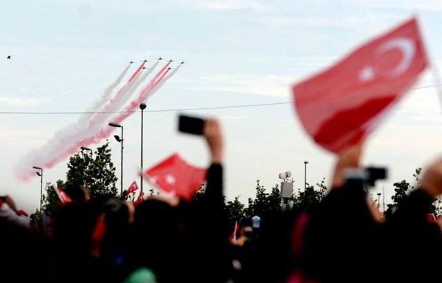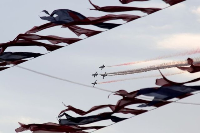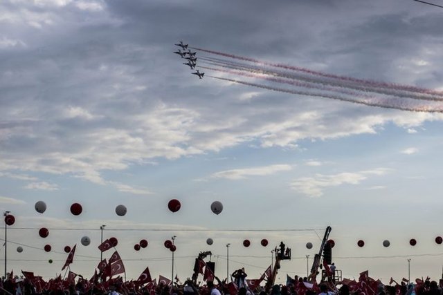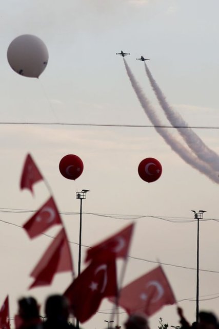 Yenikapı miting alanında düzenlenen 'Fetih Şöleni', Türk Yıldızları'nın gösterisi ile renklendi. Türk Yıldızları'nın akrobatik hareketleri ilgiyle izlendi.