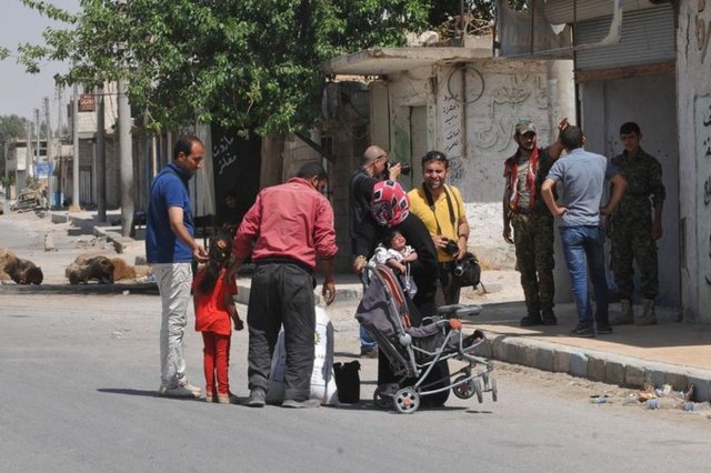 Kentte sivil sayısı oldukça az. YPG ve Burkan El Fırat güçleri, Akçakale'nin karşısındaki Suriye kenti Telabyad'ı IŞİD'in elinden aldıktan sonra kentteki tüm ev ve binaları kontrol ediyor.