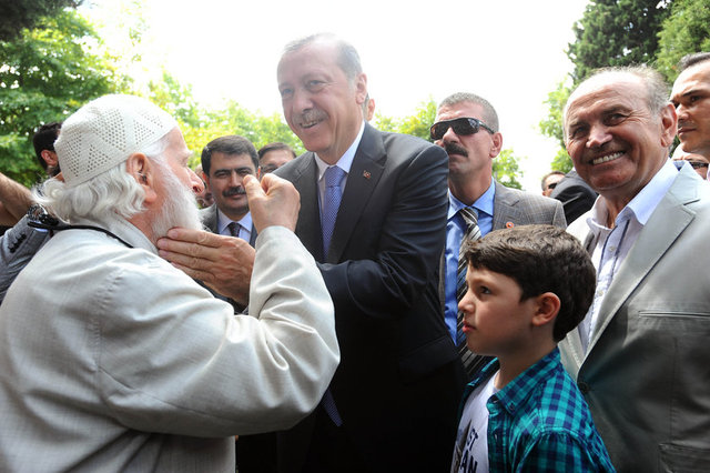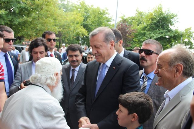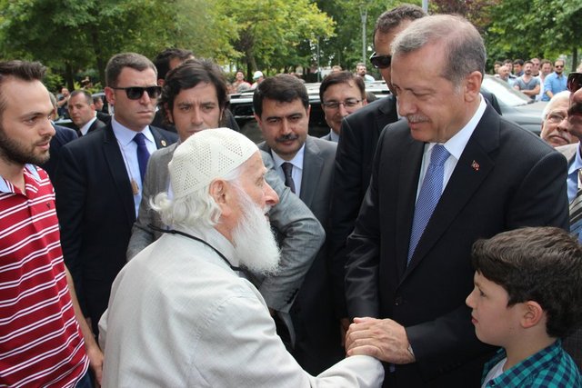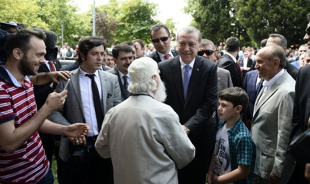 Cami çıkışında 88 yaşındaki Hacı Bayram Yılmaz, Erdoğan'a şiir okudu. Daha sonra kendisini bekleyen vatandaşlarla fotoğraf çektiren Erdoğan, çocuklara harçlık ve oyuncak verdi.