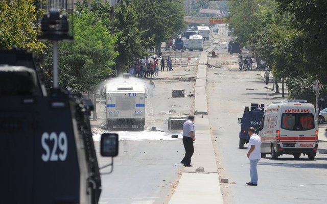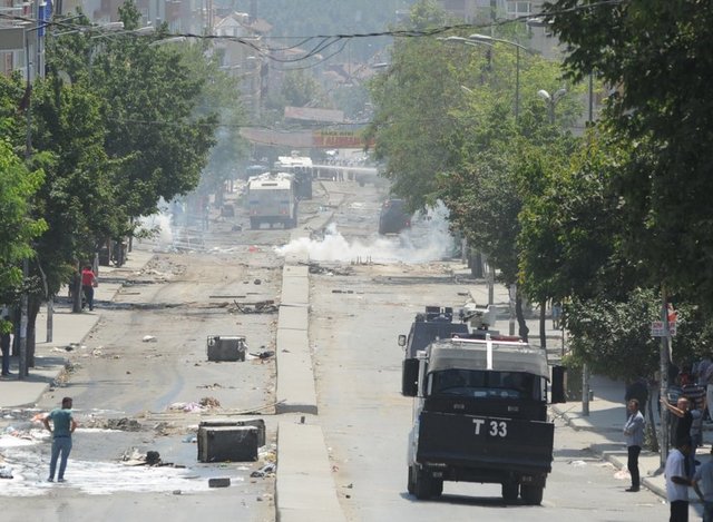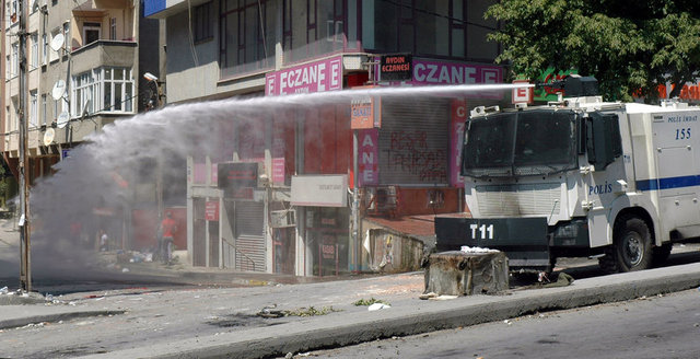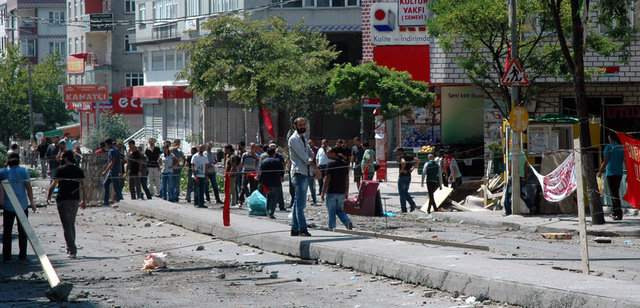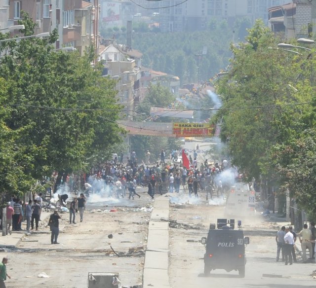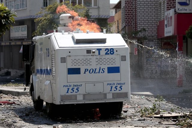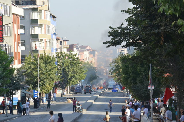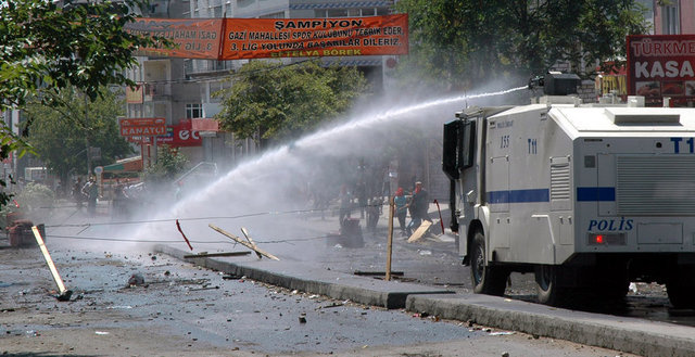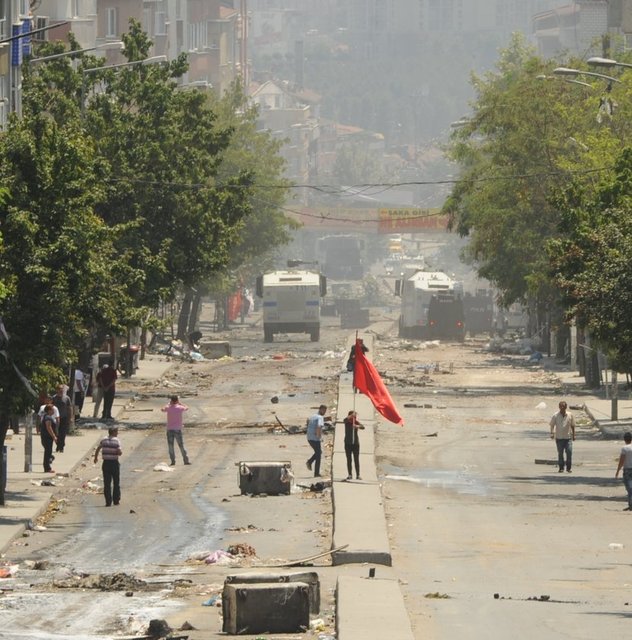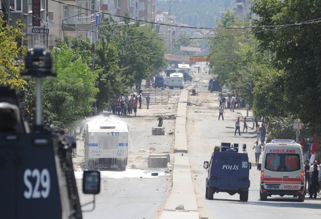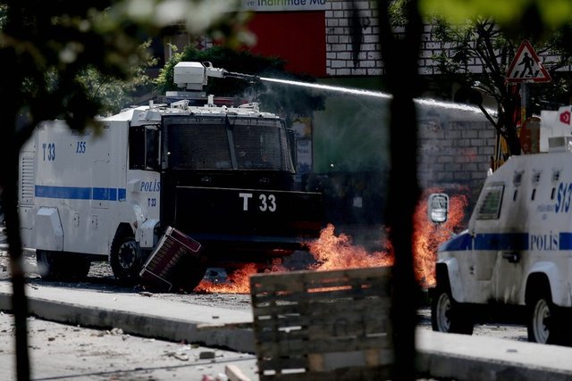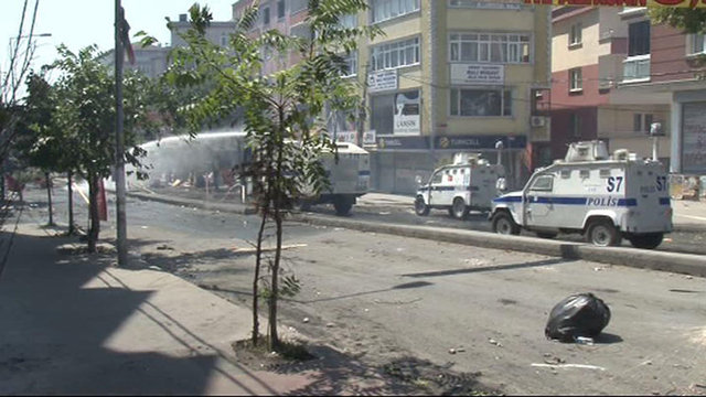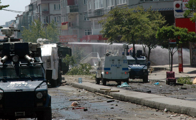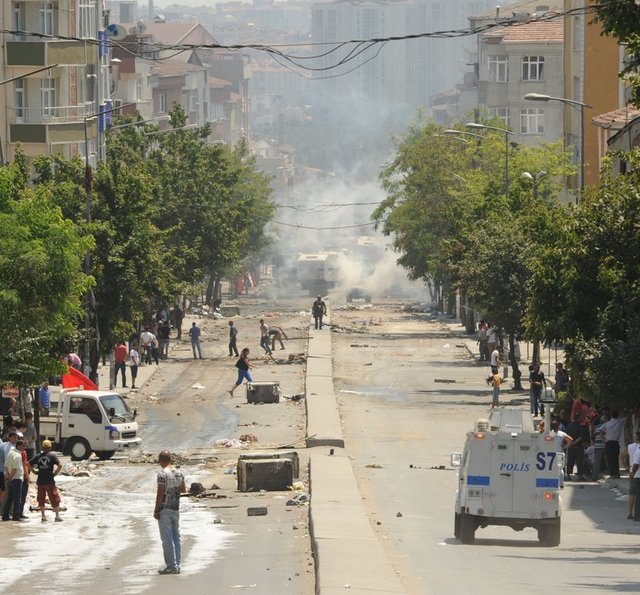 Gazi Mahallesi'nde polis toplanıp yola barikat kurmaya çalışan bir gruba müdahale etti