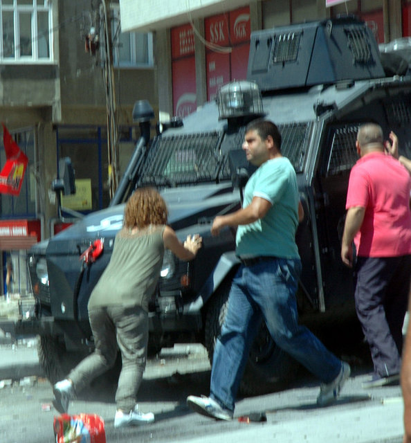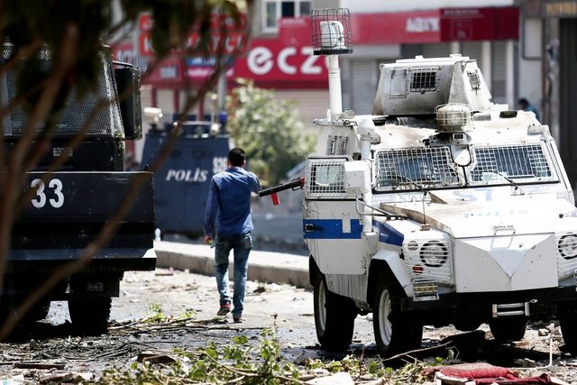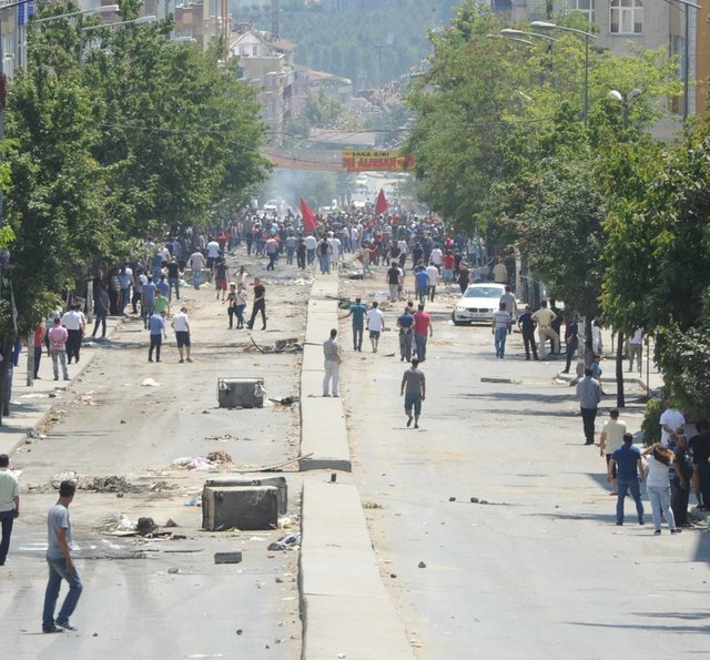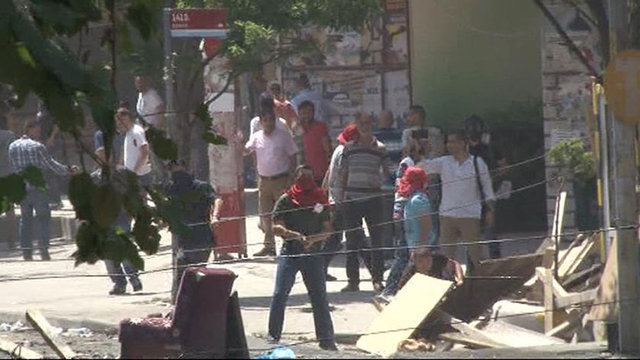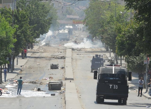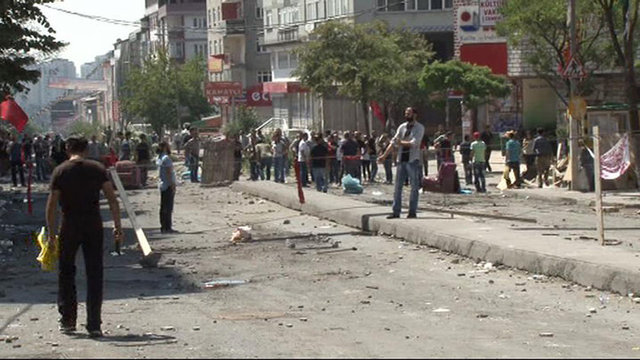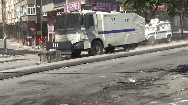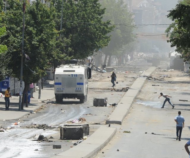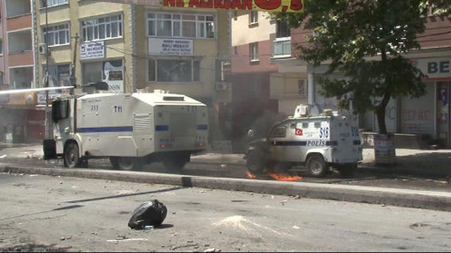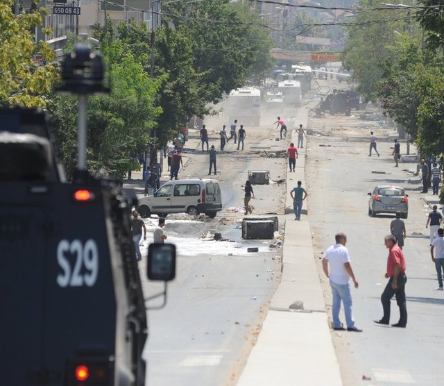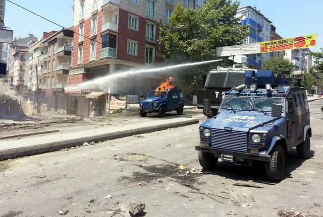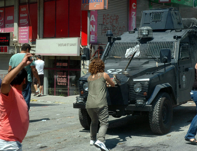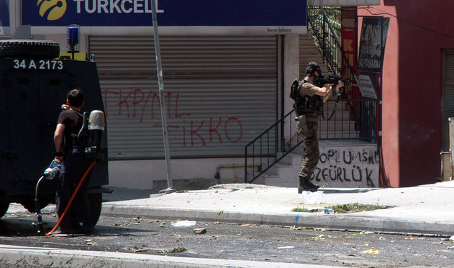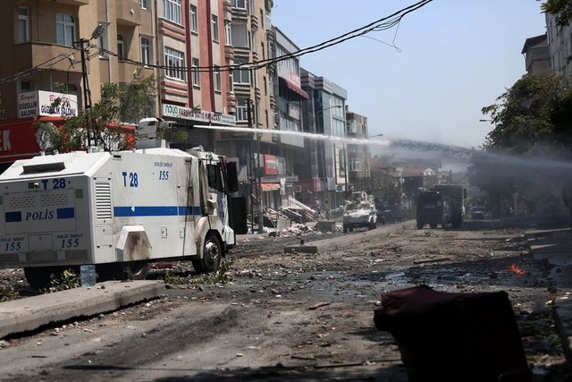 Gazi Mahallesi'nde polis toplanıp yola barikat kurmaya çalışan bir gruba müdahale etti
