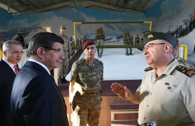 Denetleme ve incelemelerde bulunduğu öğrenilen Başbakan Davutoğlu'nun, Özel Kuvvetler Komutanlığından bilgi aldığı belirtildi.
