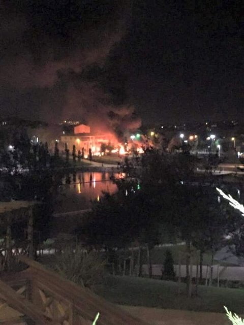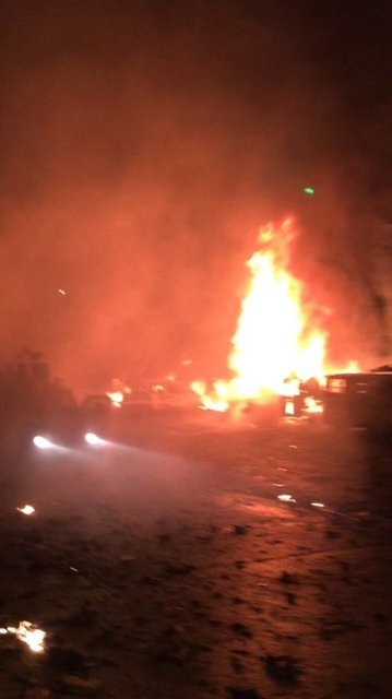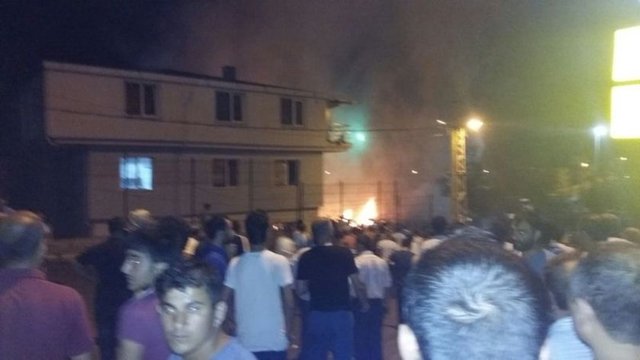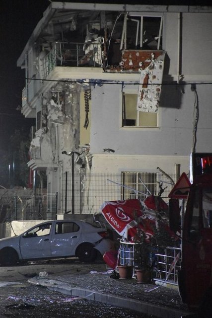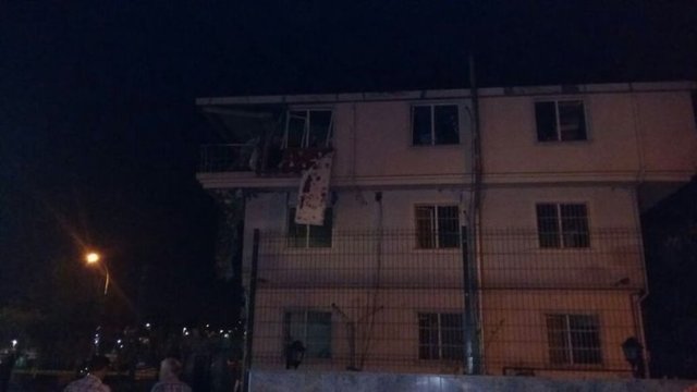 Polis merkezi önünde bulunan yaklaşık 15 araç kullanılamaz hale gelirken, çevredeki binaların camları kırıldı
