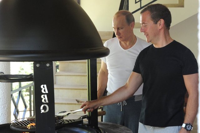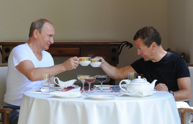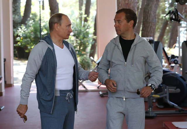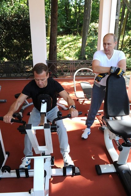 Putin bu kez de Rusya Başbakanı Dimitri Medvedev'le beraber Soçi şehrinde spor yaptı.