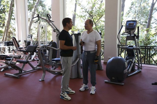 Sabahın erken saatlerinde Soçi şehrinde bulunan Başkanlık rezidansında bir araya gelen liderler, ısınma egzersizlerinin ardından ağırlık kaldırmaya geçti.
