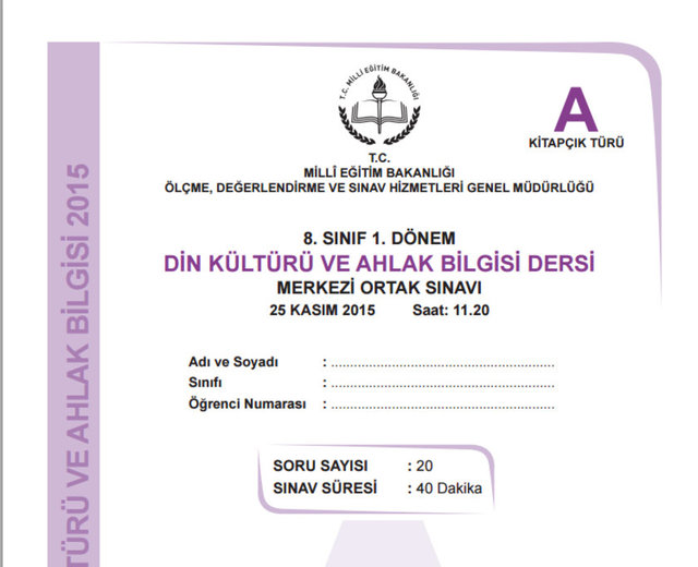 TEOG Din Kültürü ve Ahlak Bilgisi Soru ve Cevapları ( 25-26 Kasım 2015)