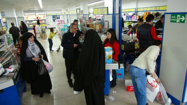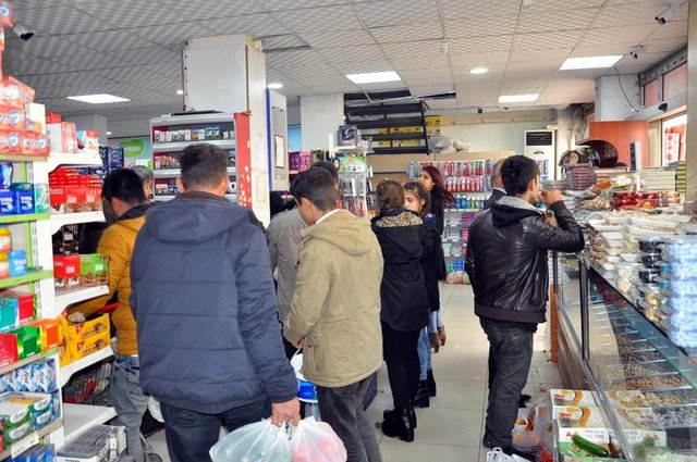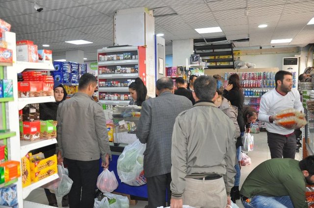 Şehri terk etmeyen vatandaşlar ise gıda sıkıntısı çekmemek için marketlere akın etti.