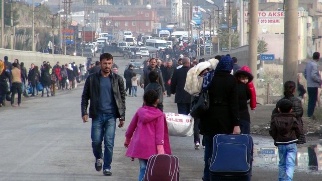 Sokağa çıkma yasağının uygulanacağının duyurulmasının ardından, Şırnak'ın Cizre İlçesi'nde yaşayan binlerce kişi ilçeyi terk etti