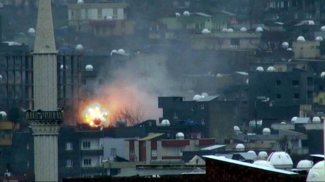 Başak Mahallesindeki meydanı teröristlerden temizleyen ve binalarda tek tek arama yapan güvenlik güçleri, tuzaklanan patlayıcıları imha ediyor. -
