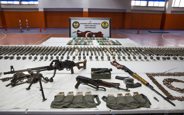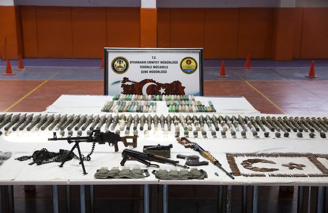 Diyarbakır'ın Sur ilçesinde operasyon bölgesindeki teröristlere ulaştırılmak üzere getirilen çok sayıda silah ve mühimmat ele geçirildi
