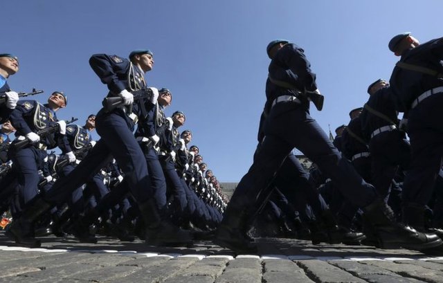 Sovyetler Birliği'nin 2. Dünya Savaşı'nda dönemin Nazi Almanyasını mağlup etmesinin 71. yıl dönümünde Kızıl Meydan'da geleneksel askeri geçit töreni yapıldı.