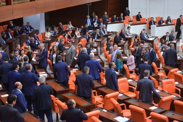 Toplantı, CHP'liler ile Meclis Başkanı İsmail Kahraman arasındaki "laiklik" tartışması ile başladı. Tartışmanın büyümesinin ardından CHP'liler salonu terk etti. Tartışmalar sonrası dokunulmazlık teklifinin 1'inci maddesi için oy kullanıldı.