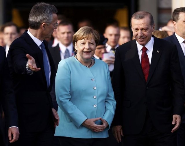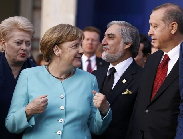 Uçuş gösterisi öncesi Cumhurbaşkanı Erdoğan, Almanya Başbakanı Angela Merkel ile bir süre sohbet etti.