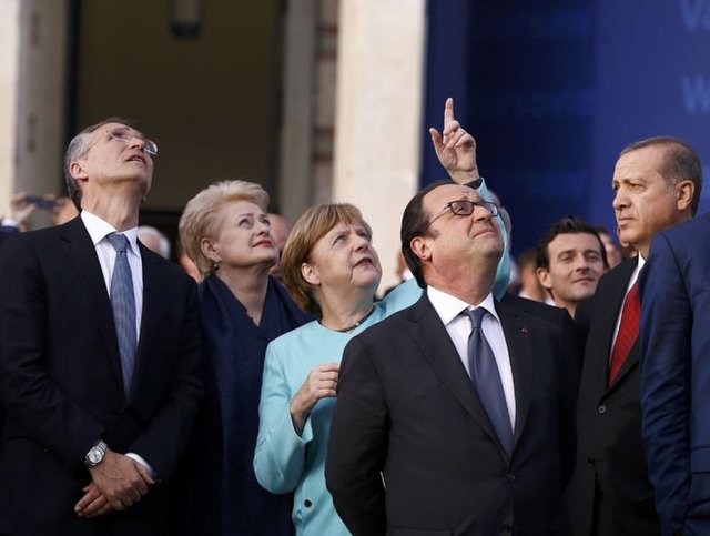 Liderler burada, aralarında NATO'ya ait AWACS'ın da bulunduğu müttefik ülke uçaklarının geçişlerini izledi.