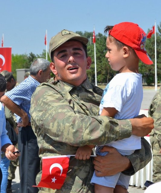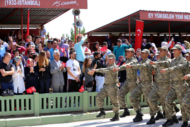 Törende, Ulaştırma Marşı'nın okunmasının ardından eğitimlerini tamamlayan askerler, tören geçişi yaptı. Aileler, tören geçişi sırasında sevgi gösterisinde bulunarak "En büyük asker bizim asker" sloganı attı.