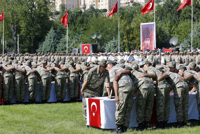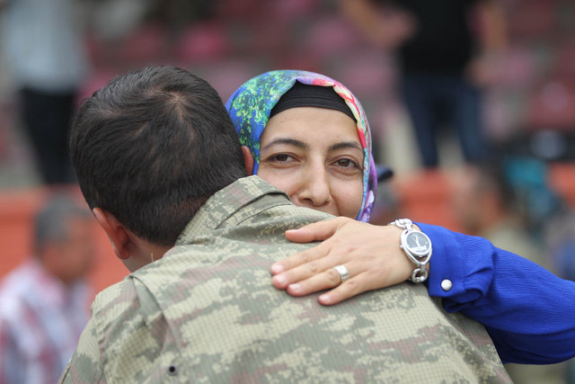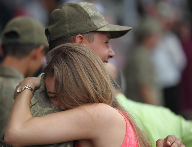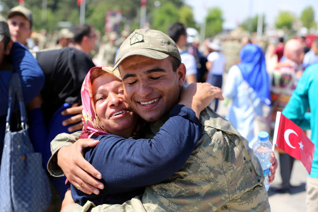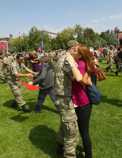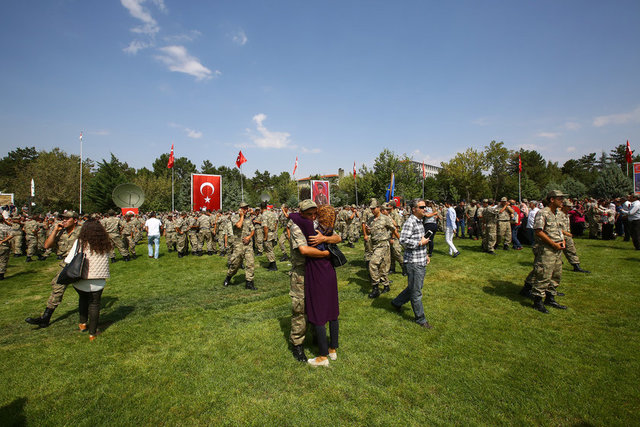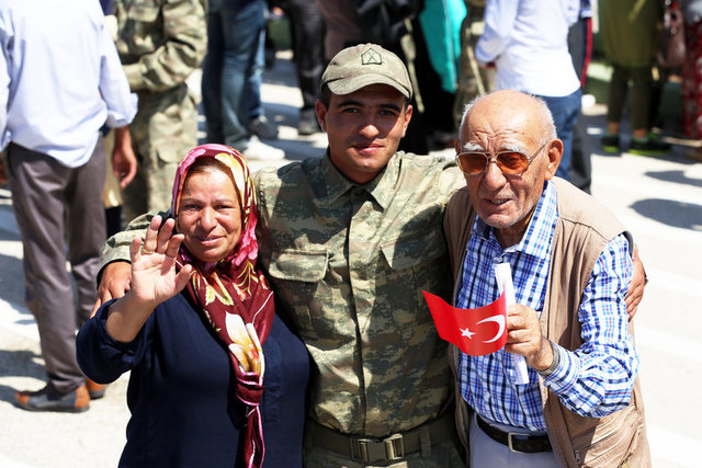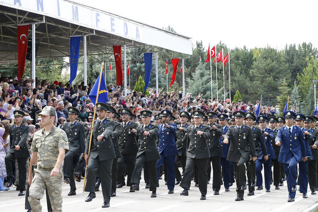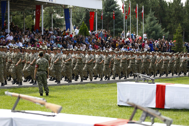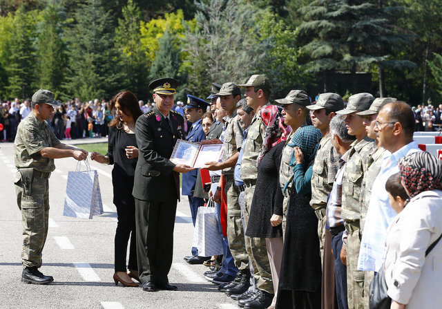 Tribünleri dolduran aileler, yemin törenini coşku içinde seyretti.Tören alanında, 2 bin 681 askerin ant içmesinin ardından Kara Kuvvetleri Eğitim ve Doktrin Komutanı Korgeneral Tahir Bekiroğlu'nun tebrik mesajı okundu.
