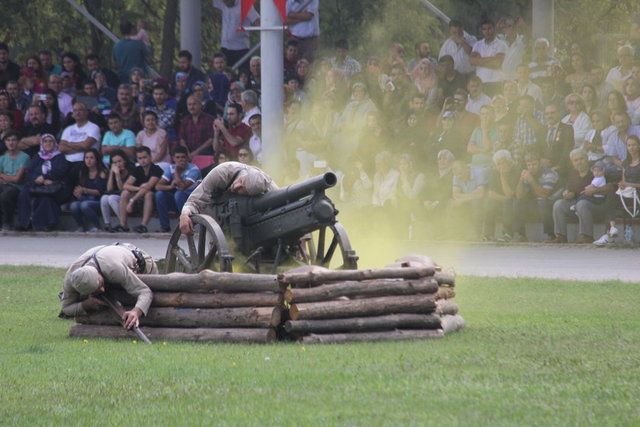 Törende Kara Kuvvetleri EDOK Komutanı Korgeneral Tahir Bekiroğlu'nun, yemin edecek askerlere yönelik mesajı okundu ve Çanakkale Savaşları sırasında askerlik yapmış "Kınalı Ali"nin hikayesini konu alan tiyatro oyunu sergilendi.